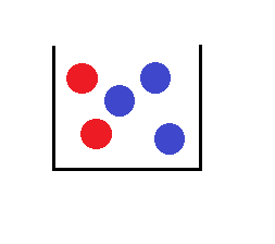 Aus der obigen Urne (mit 2 roten und 3 blauen Kugeln) werden zwei Kugeln mit Zurücklegen gezogen.