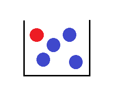 Aus der obigen Urne (mit einer roten und 4 blauen Kugeln) werden zwei Kugeln mit Zurücklegen gezogen.